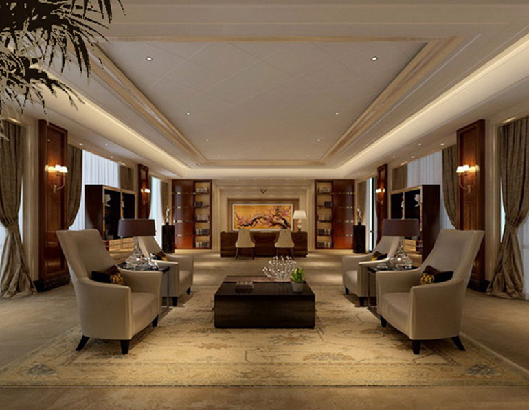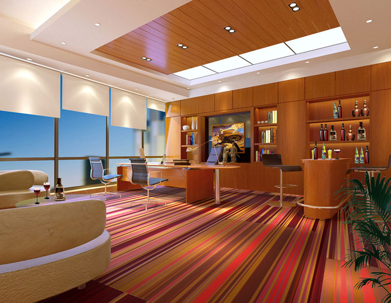 工程說明:因為是投資公司,所以辦公室裝修的色調上取紅色為主,多處運用木材,點紅之意,在空間效果上采用現代與古典美相結合。