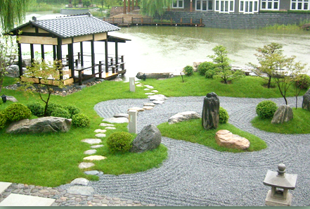 首先就是要注意均衡的原則,因為均衡是人對其視覺中心兩側(cè)及前方景物具有相等趣味與感覺的份量。而且如前方是一對體量與質(zhì)量相同的景物,一對石獅,即會產(chǎn)生均衡感。庭院設(shè)計中也要注意這一原則。